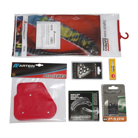 | Composition du pack | Bougie, Filtre à air, Galets, Plaquettes avant, Courroie, Machoire de frein arrière |
